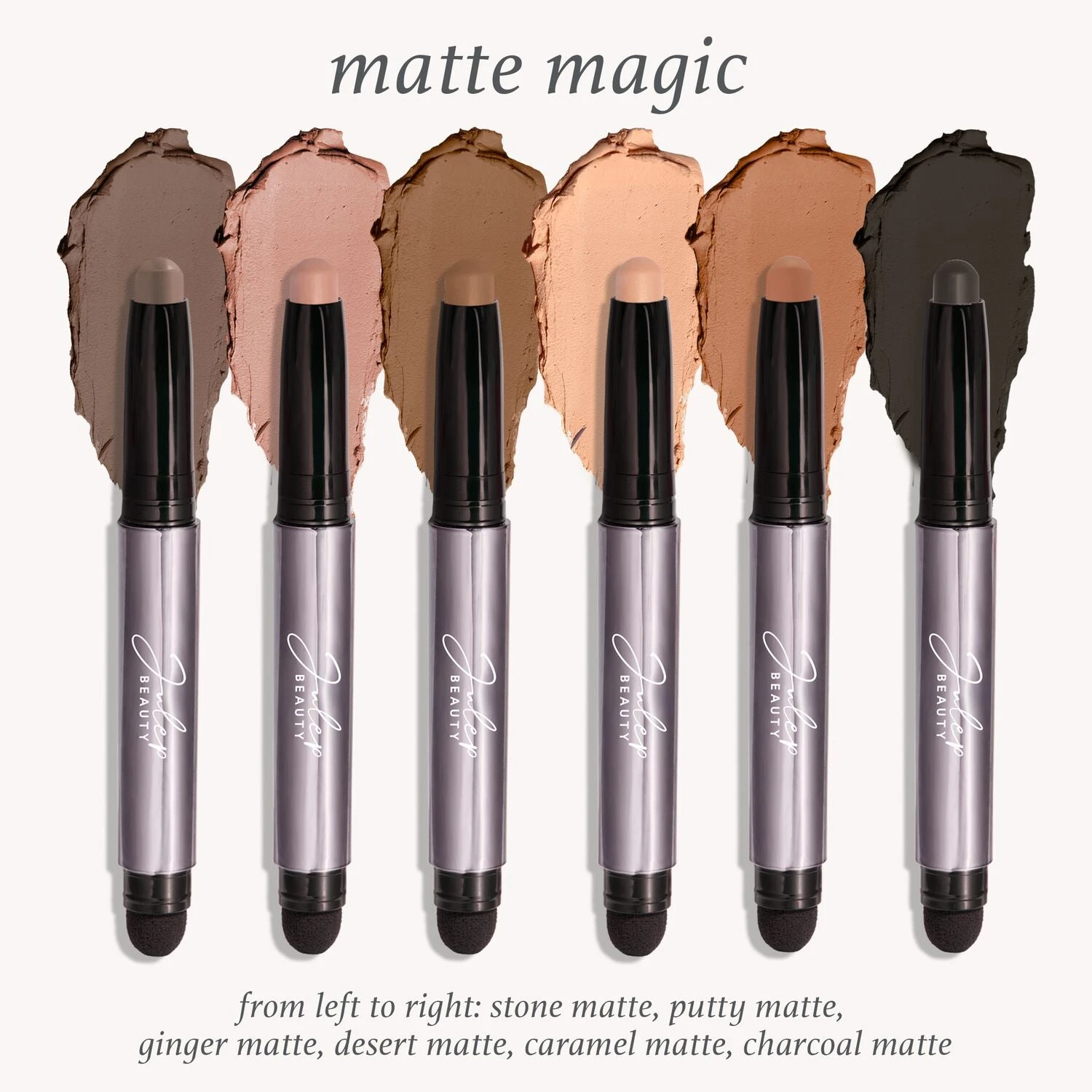 These easy-to-use eyeshadow sticks are the magic touch to bring your everyday eye looks to life! Enhance your eyes or add design and dimension with this set of 6 neutral Eyeshadow 101 shades in classic matte finishes.